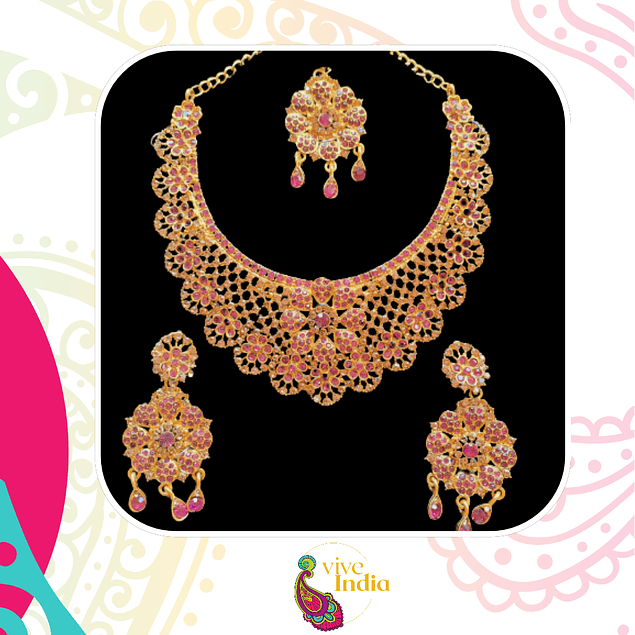 Set de joyas de fantasía diseño Hindú, elegante con piedras. Para usarlo en ocasiones especiales o cuando tú quieras.